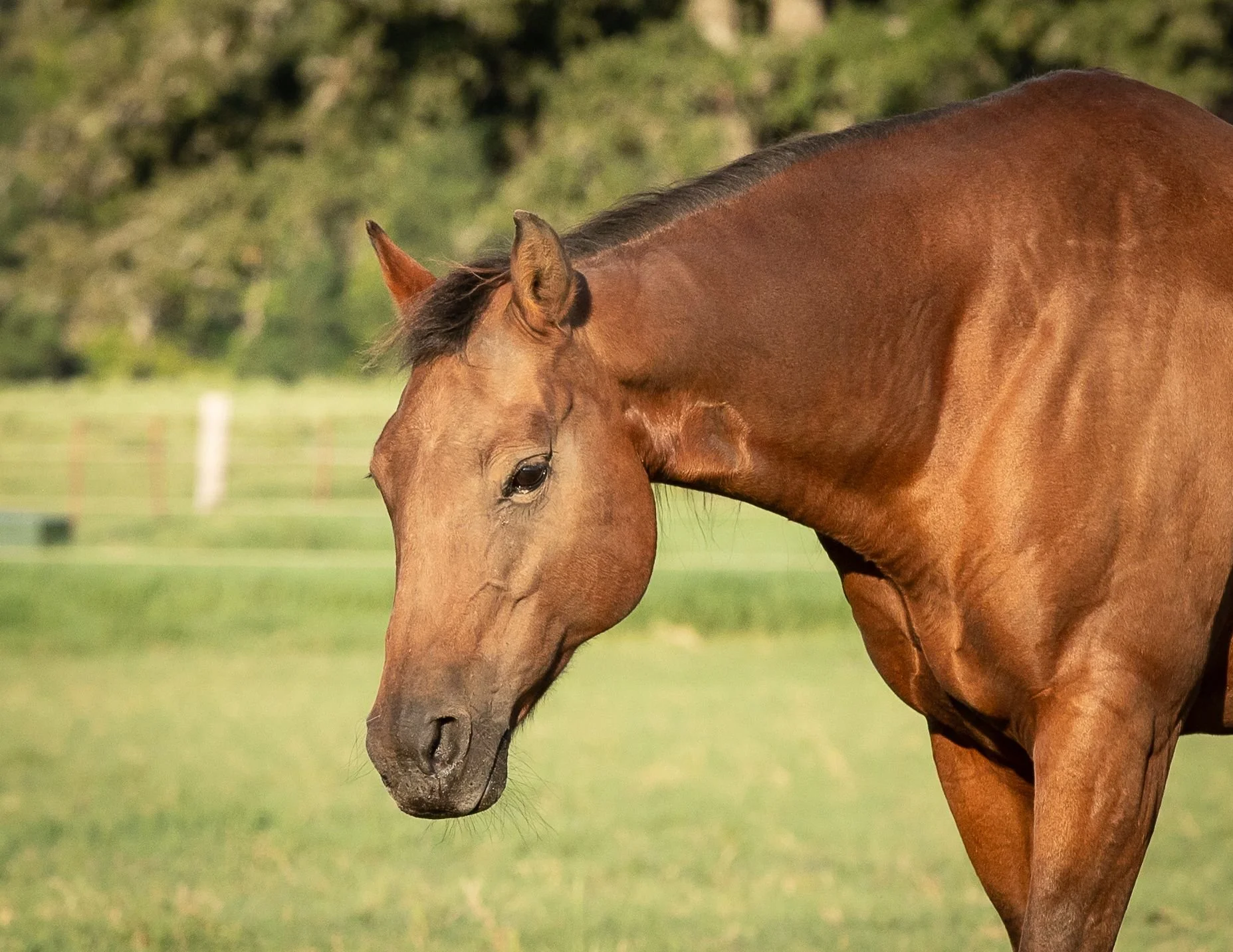 Jazmine is a Quarter Horse mare who came to Pegasus in March of 2022; relinquished by her most recent owner. We were told she was purchased a year before, but the owner was having difficulty putting weight on her. Jazmine was very thin, despite sincere but poorly informed efforts. In short order, we got Jazmine looking and feeling great. Once she had gained appropriate weight, we began trying her under saddle. She was broke to ride, but a bit bracey and pushy. With some consistent work, Jazmine has proven to be a solid-minded girl. At 24 years old, she has a little arthritis and will need to be ridden lightly, but Jazmine will make a nice horse for the weekend rider who wants to stroll down the trail on a pretty little partner.