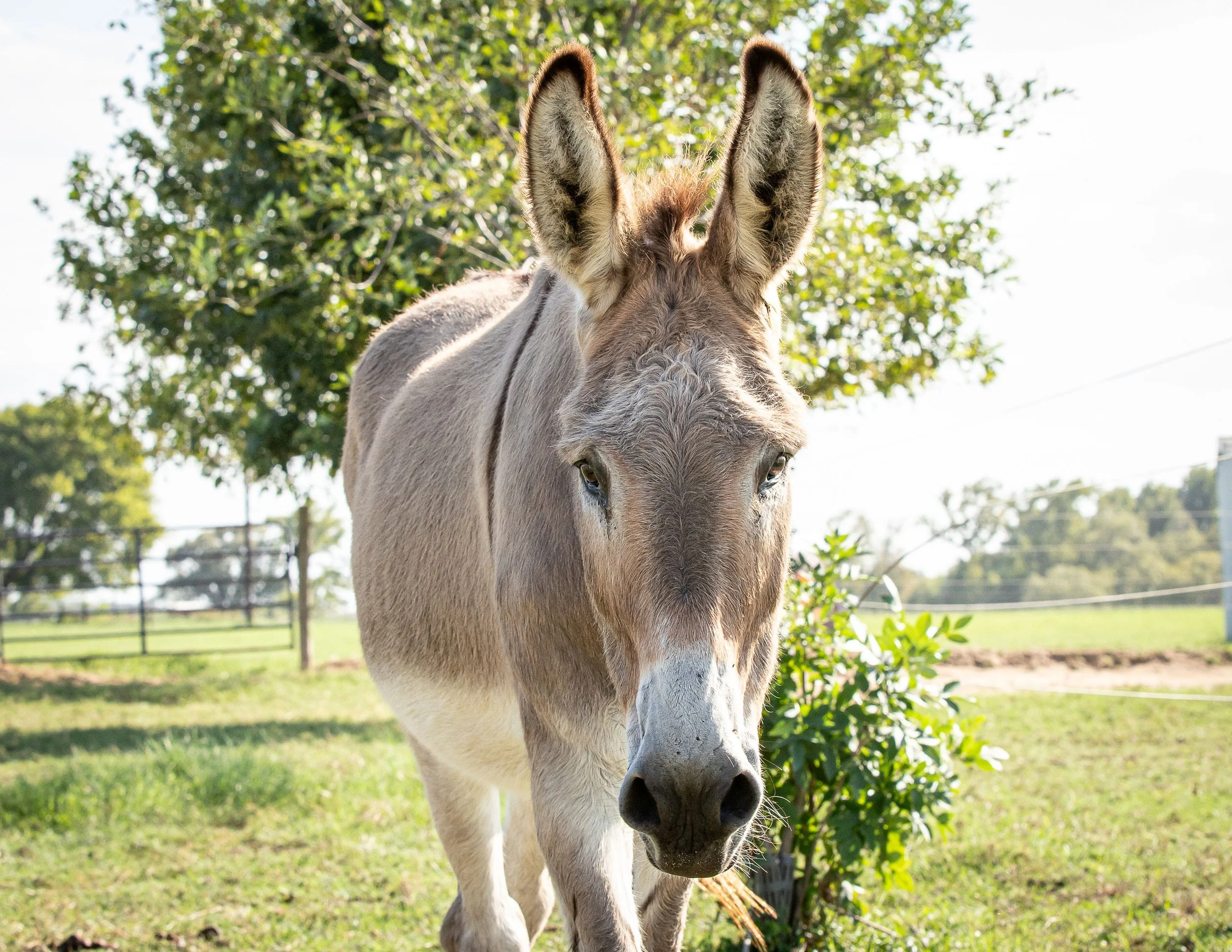 Jim is a bit cranky. Once you form a bond with him, you can tell that he loves you deep down. (Really, you can) He doesn’t like to be messed with much, but his favorite people can groom him and give him a little loving on his terms. Jim has old laminitic damage to his hooves. We struggle to keep him sound and he has recurrent abscesses. But, he’s sound more than he’s not, he eats well, and he is happy with his simple donkey life. Here at Pegasus, we love him hard, and we know that anyone who understands donkeys will see all his good qualities and respect his wisdom. He’s challenging with the vet and farrier, and so he needs an adopter with experience and skill and with kind patient professionals. We are proud to have offered sweet old Jim a soft landing. And if he stays with us forever, we are a-ok with that!